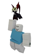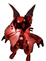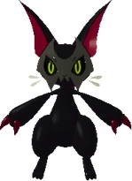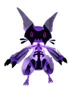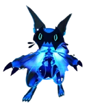 Duskit is a small black Loomian with a humanoid raccoon shape. It has 2 big ears with red insides and its face is covered by a white, mask-like marking with whiskers. Its eyes are bright green, and it possesses 2 maroon-colored claws on each hand and 3 toes on each foot. Its Halloween forms are a skeleton version of Duskit, with ectoplasm making up the shape of Duskit's body. Its eye color matches with the color of the ectoplasm its body is made out of (red, orange, yellow, green, blue, or purple).